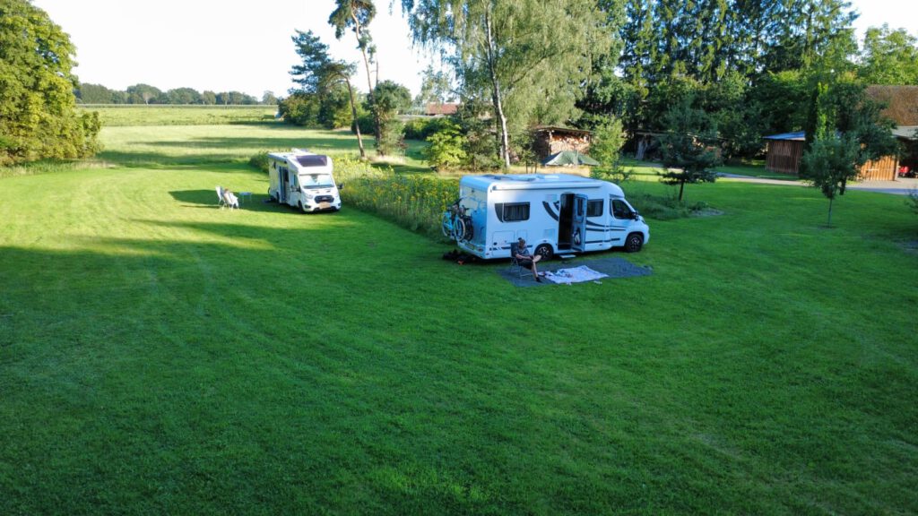 Wer Ruhe und Entspannung sucht und dem Campingplatzgedränge entfliehen möchte, ist bei uns genau richtig. Die Stellplätze befinden sich auf einer weitläufigen Wiese am Hof. Diese ist auch bei nassem Wetter befahrbar.